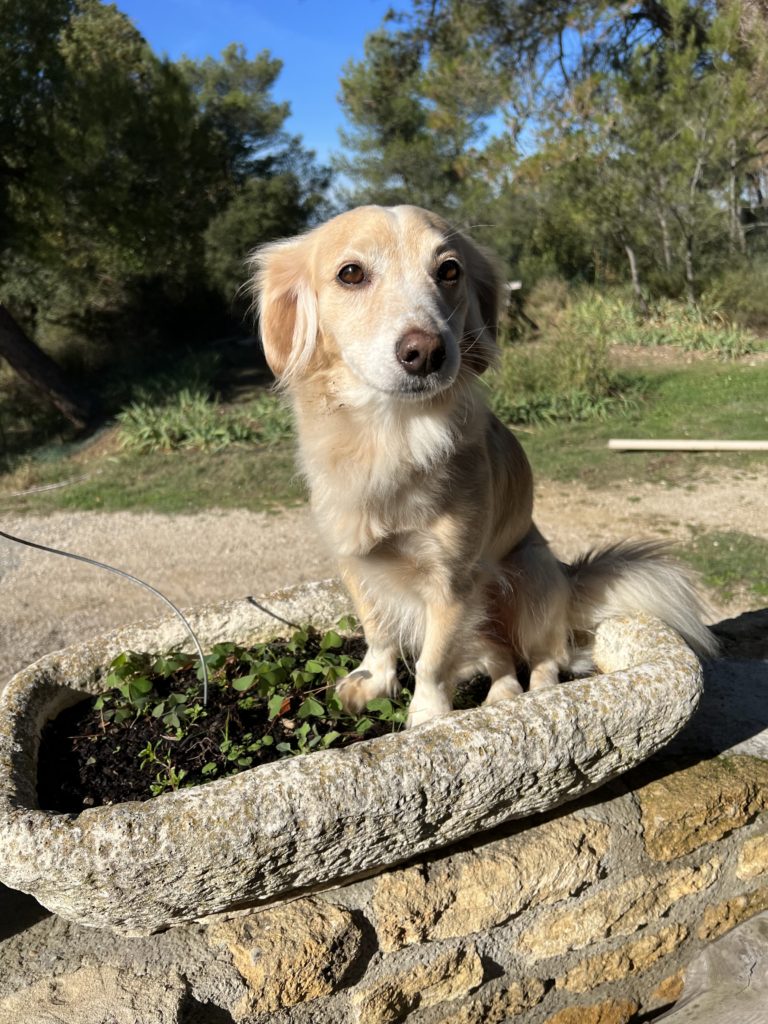 Tessa, the eldest and affectionately known as “The Boss of Everything,” keeps a watchful eye on all activities. A rescue from Crete, she survived a serious accident before coming to Germany, and at nearly 16 years old, she still rules with quiet authority.
